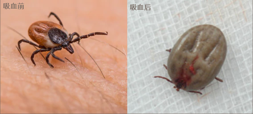 蜱虫是一种寄生在动物体表的吸血寄生虫。从体型来看,呈椭圆状,未吸血时,腹部扁平,背部微微隆起;但吸血之后,整个身体会胀大呈赤豆状。