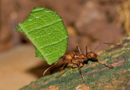 在亚马孙的热带丛林就有这样一种怪蚂蚁,它们并不直接吃树叶,而是将叶子从树上切成小片带到蚁穴里发酵,然后取食在其上长出来的蘑菇。