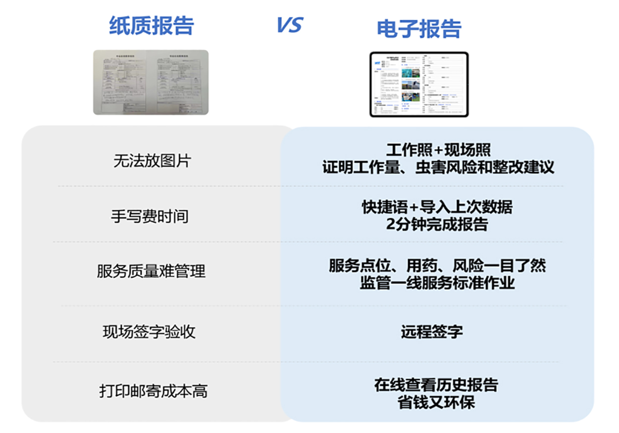 纸质报告手写过程的错误和造假难以发现和纠正,特别是在书写不清晰或笔记潦草的情况下。而电子报告既可以减少手写错误,也能有效监管服务过程是否规范和标准。